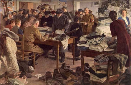 Ein weiteres Bild mit dem Thema „Opfer bringen“ ist das Gemälde „Wollsammlung in einer Münchner Ortsgruppe”, das 1942 ausgestellt wurde.Hintergrund war der Feldzug gegen Rußland und Hitlers Glaube, das Land innerhalb von drei Monaten zu erobern. Die Mehrheit der Verbände war nicht mit Winterkleidung ausgestattet worden, und um den ab Oktober 1941 einsetzenden enormen Bedarf zu decken, wurde im Reich eine Pelz- und Wollsammlung durchgeführt: Nur eine von unzähligen „Sammlungen“ während der Kriegsjahre.